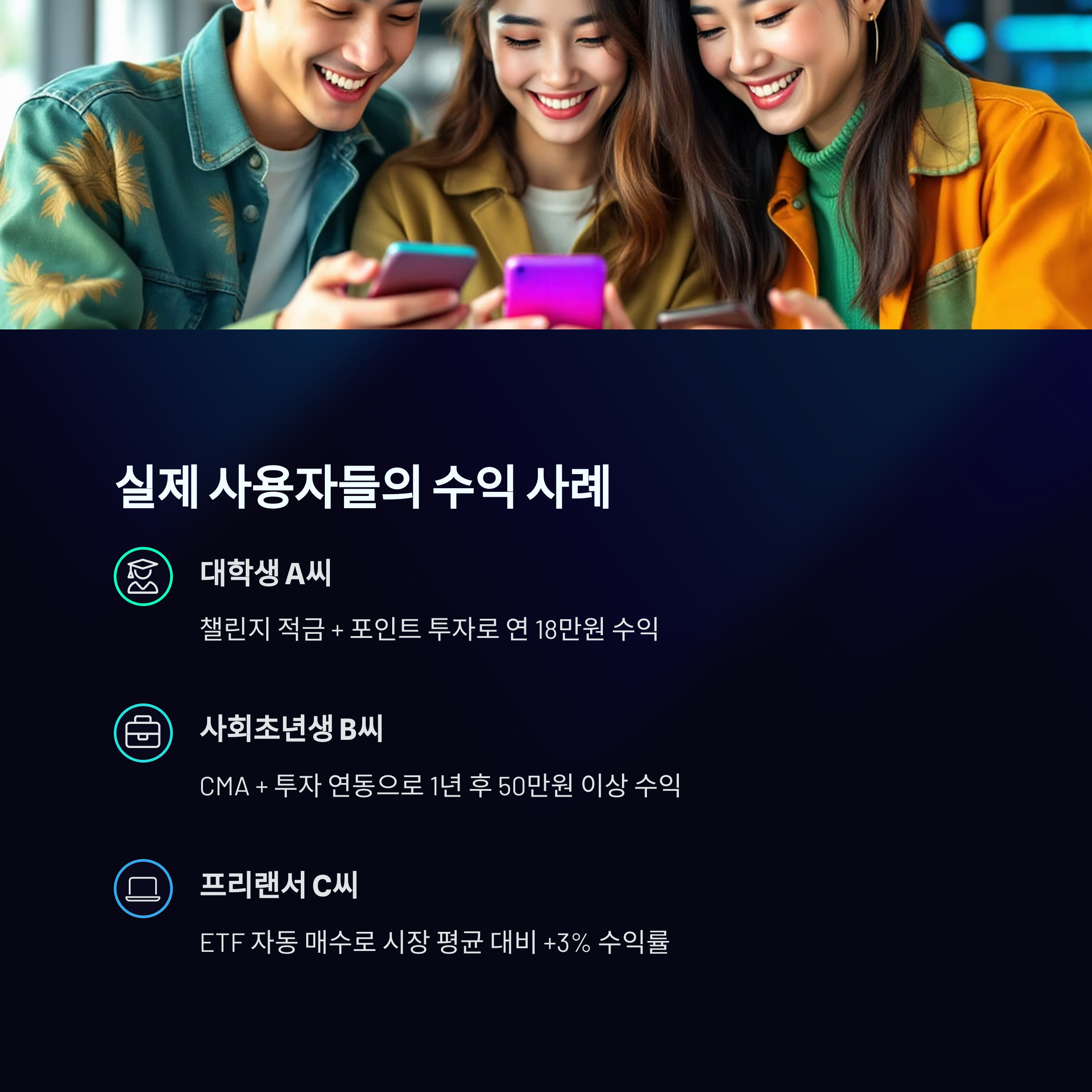 - 매달 3만 원 챌린지 적금 + 포인트 자동 투자 연계