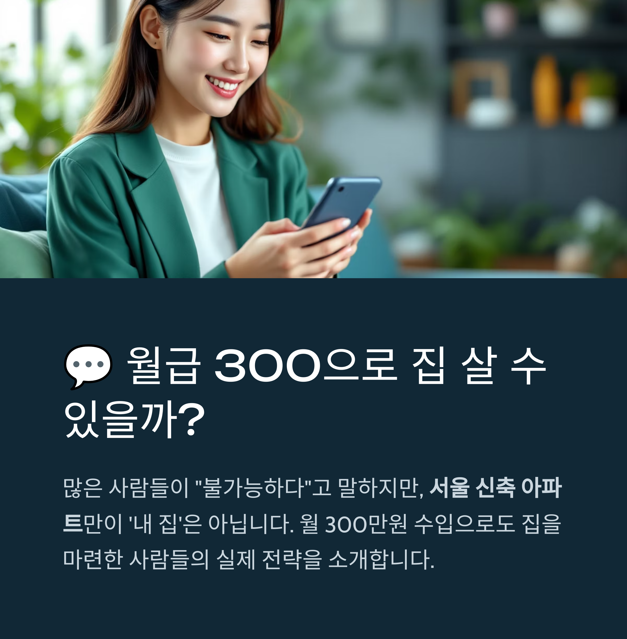이 글에서는 실제로 월 300 안팎의 수입으로 집을 마련한 사람들의 전략을 정리해 소개합니다.