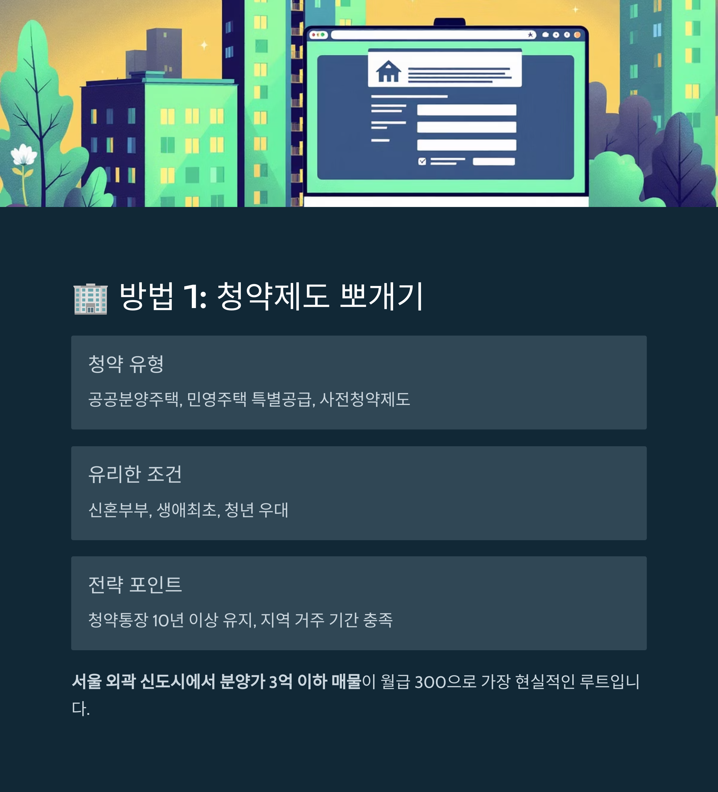 ✔ 월급 300으로 내 집 마련 가능성 가장 높은 루트가 청약입니다.